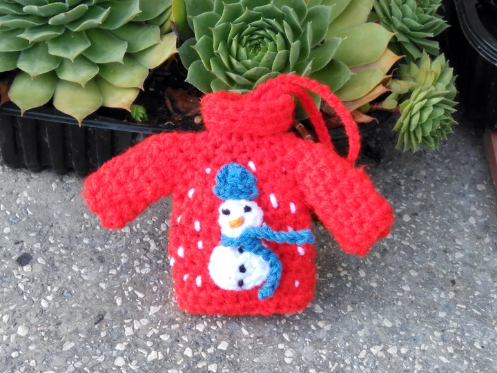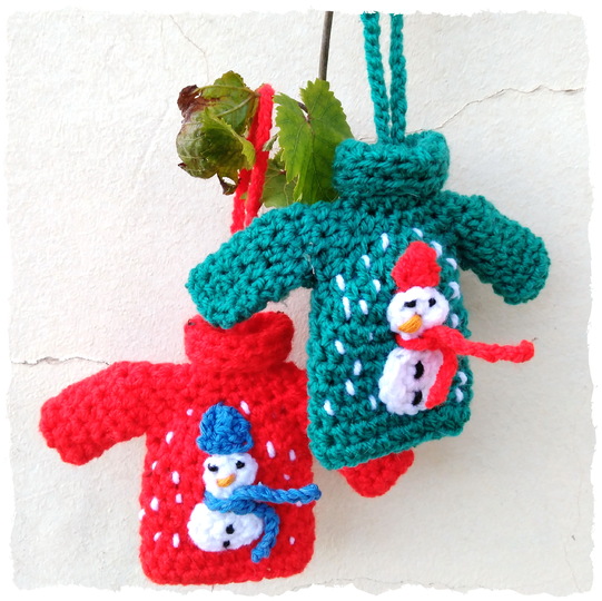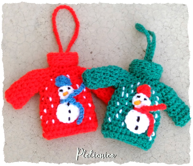 Ugly Christmas sweater ornament is a perfect Christmas gift for your kids and friends. You can decorate your Christmas tree with this tiny sweater, made by yourself! Ornament is made of cotton (or acrylic) yarn, dimensions are 13 cm (5 inches). Pattern is written in English, U.S. terminology.