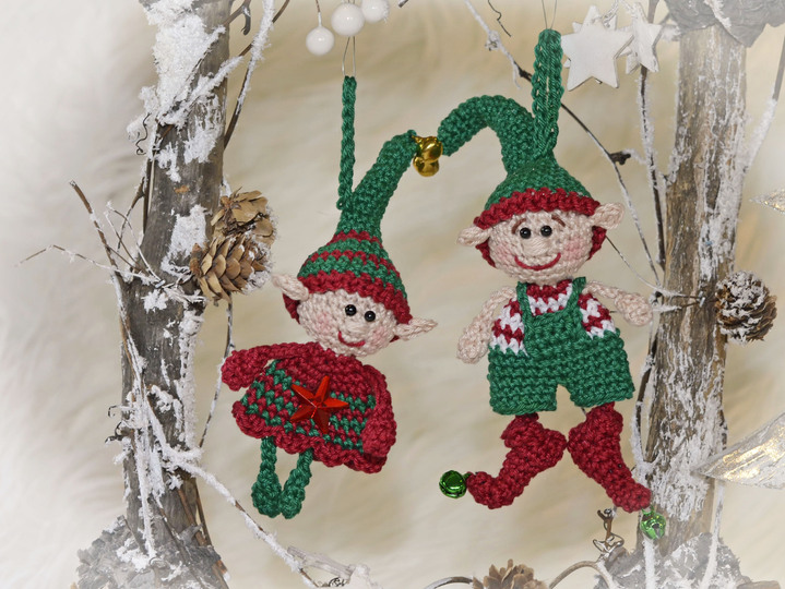 Mit dieser Anleitung zeige ich dir, wie du diesen lustigen Anhänger "Herr und Frau Weihnachtself " häkeln kannst.