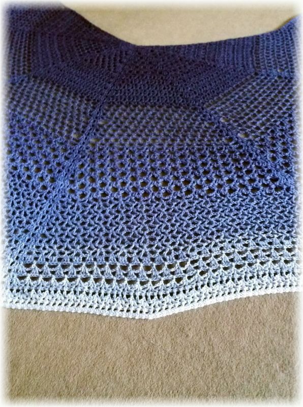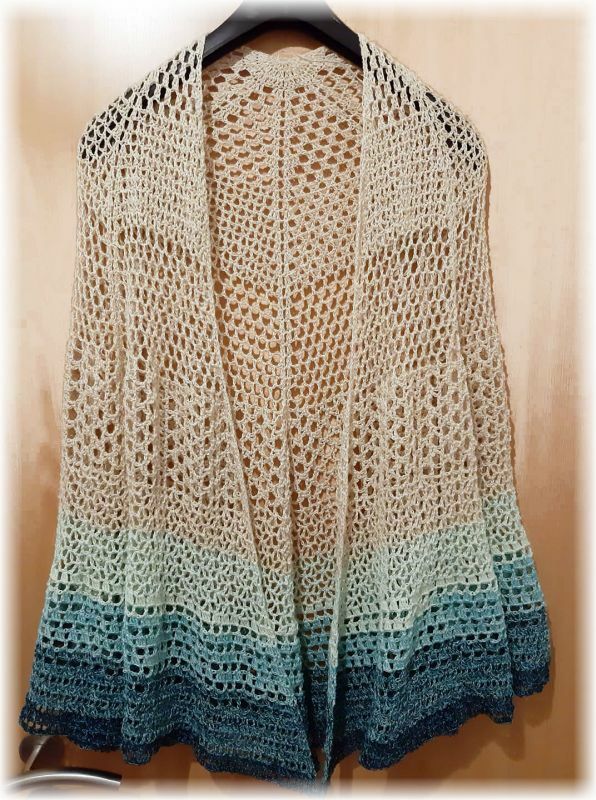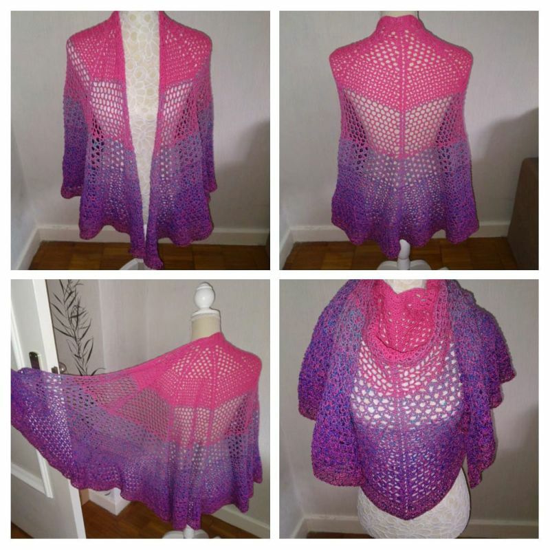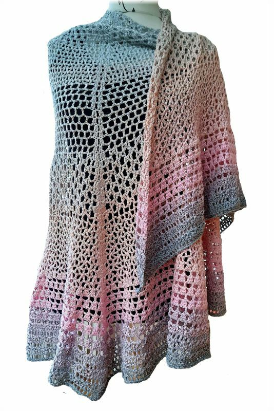 Seven Corners ist ein luftiges großes Schultertuch. Es besteht aus 6 gleichen Flächen und ist leicht nachzuarbeiten. Die Muster sind alle einfach gehalten und auch für noch nicht sehr geübte Häkler/innen leicht nachzuarbeiten.