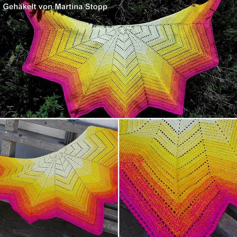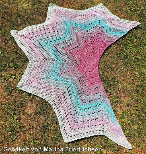 With this crochet pattern you can create a big star shaped wrap or shawl that is as individual as you and as your aura.