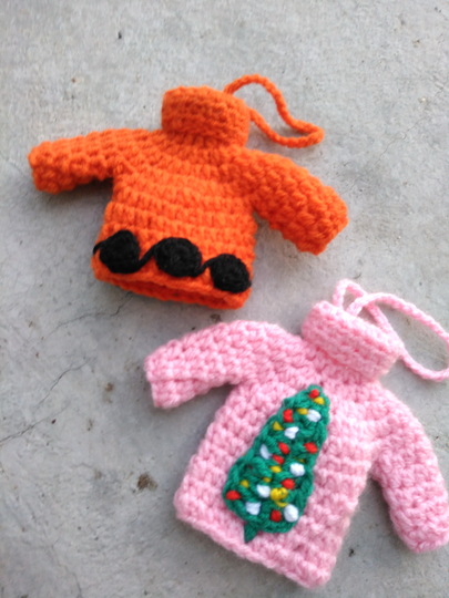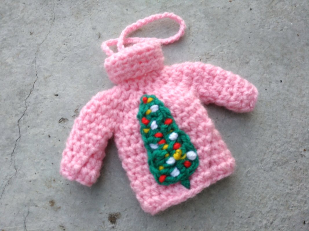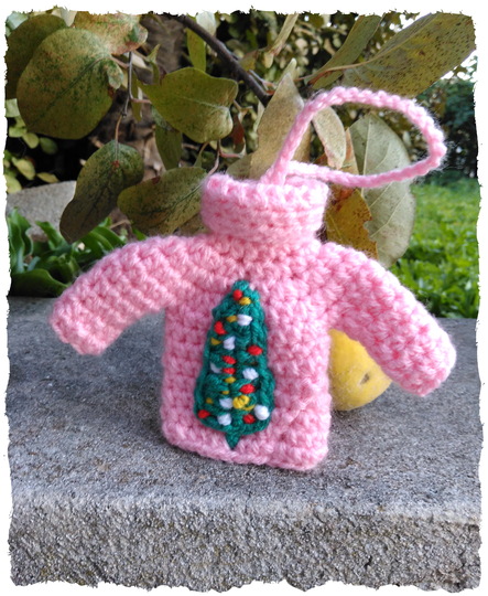 Pink Christmas sweater ornament is a perfect Christmas gift for your kids and friends. You can decorate your Christmas tree with this tiny sweater, made by yourself! Ornament is made of cotton (or acrylic) yarn, dimensions are 13 cm (5 inches). Pattern is written in English, U.S. terminology.