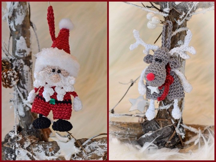 Mit dieser Anleitung zeige ich dir, wie du diese lustigen Anhänger "Nikolaus und Elch" häkeln kannst.