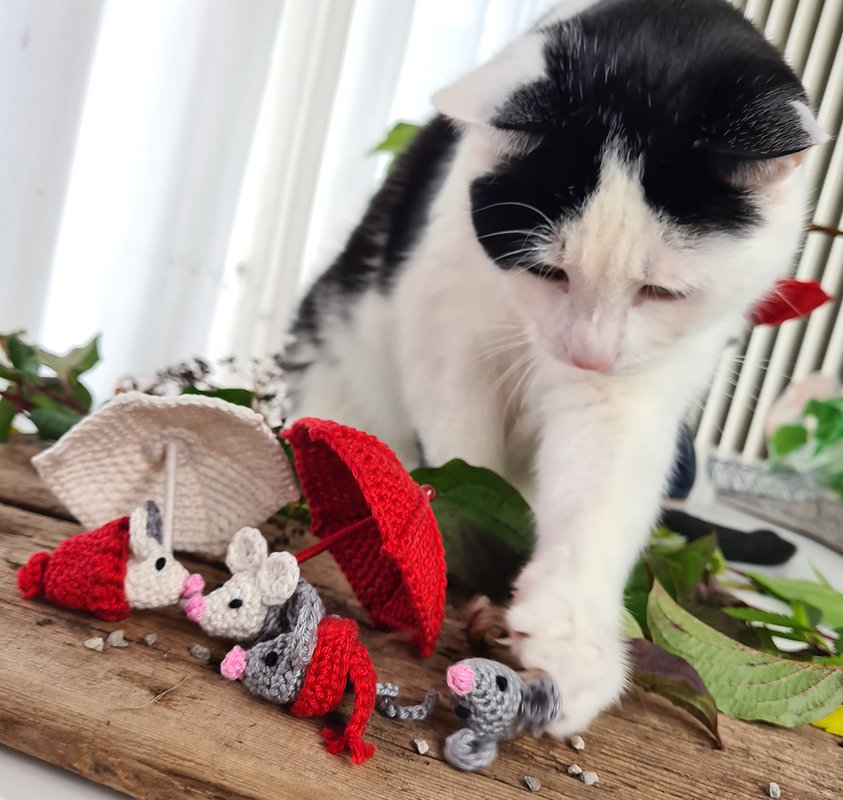 With umbrella, scarf and bobble hat, this sweet gang of mice defies any dirty weather. That's how cute the little mice are when they snuggle up together under their umbrellas.