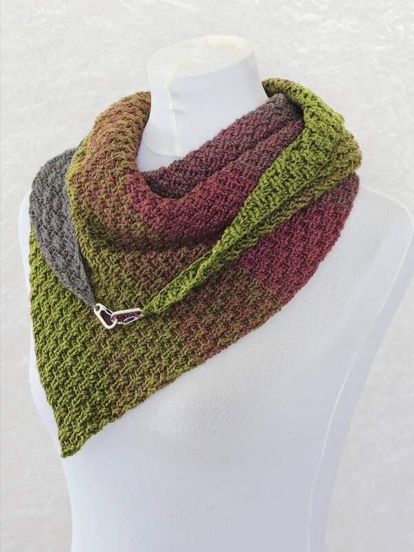 Crossy is a simple but effective triangle shaped shawl. It is worked from one side to the other in a slightly asymmetric shape.