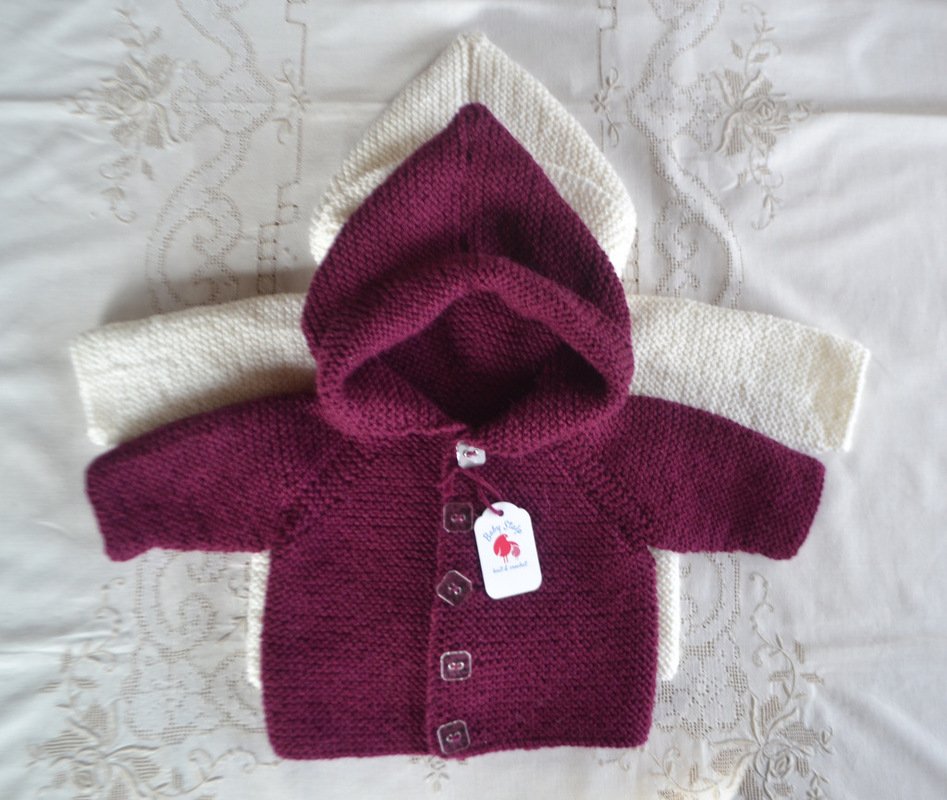 STRICKANLEITUNG FÜR BABY JACKE MIT KAPUZE, KOMPLETT IN EINEM STÜCK GESTRICKT