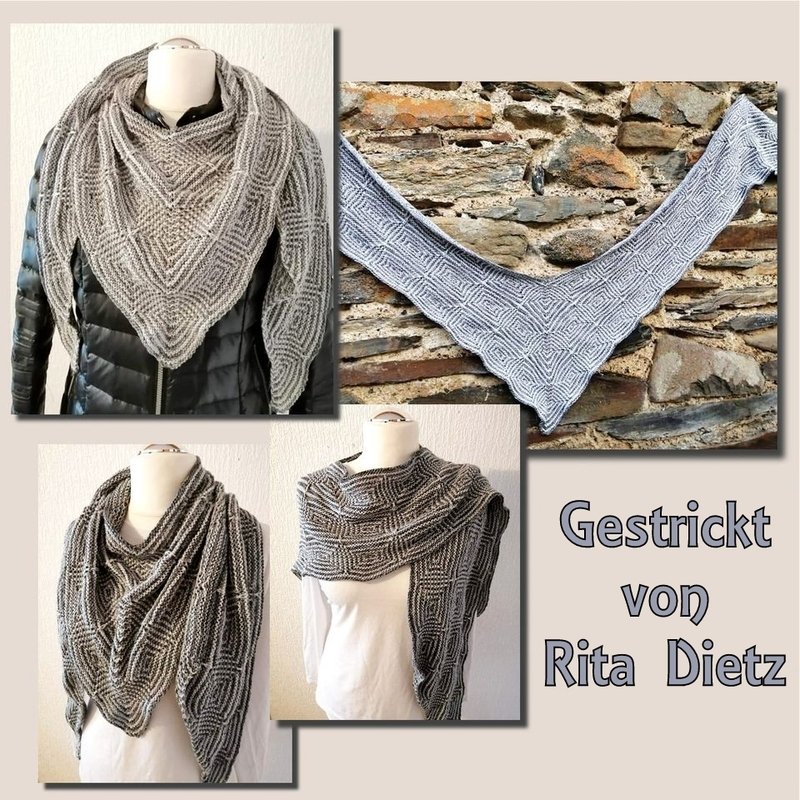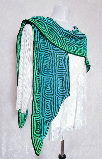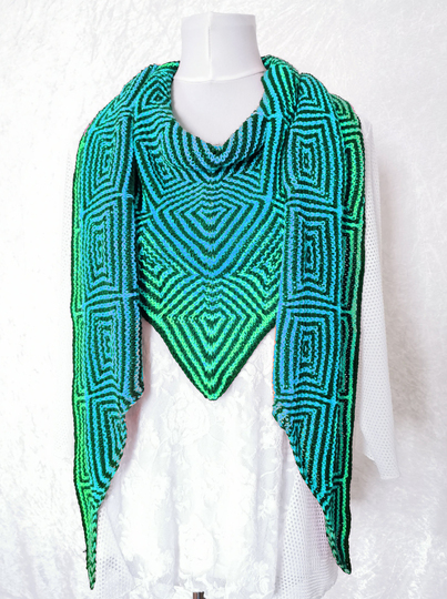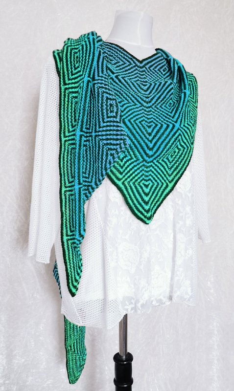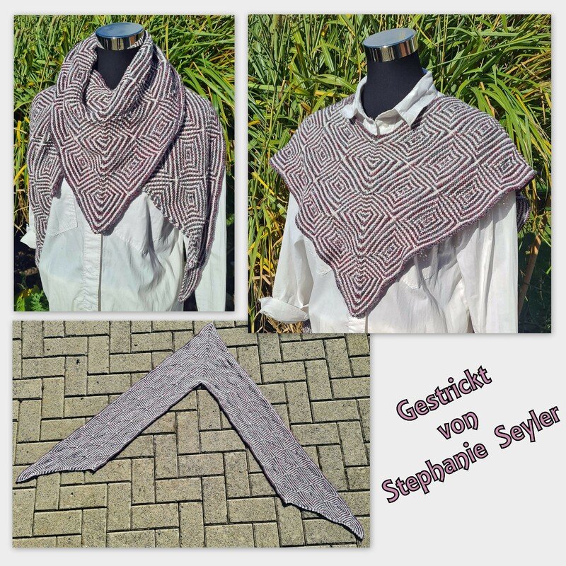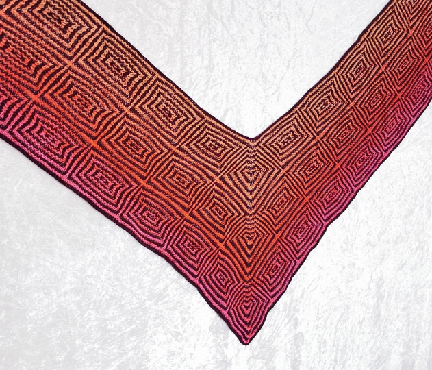 This stylish shawl is designed as a sequel to my pattern "Walk the Line". Slipped stitches create diamonds and give the shawl a very interesting visual effect.