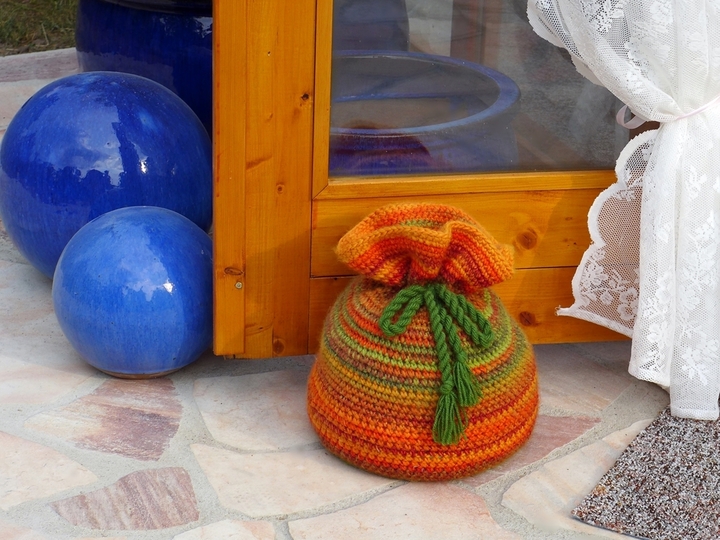 Thought, done. My doorstop is colorful and cheerful to look at - with its height of almost 11.8in and its weight of 8.8lb it is big and heavy enough to reliably hold any door in the desired position. It is crocheted from only one ball of wool. Depending on the filling, you can use it indoors or outdoors.