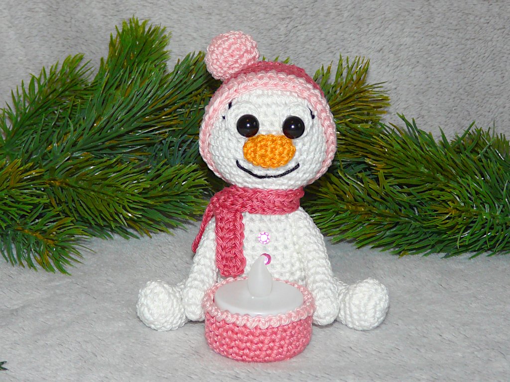 It is always nice and cosy to spend your evening in the cold season with the shine of tea lights. Suiting the cold season I have crocheted these cute snowman tealight holders. With these cute tealight holders you can bring a little bit of Christmas spirit into your home. On every christmas table, windowsill, table or cupboard they are something very special. They spread a warm and cosy atmosphere and are quickly crocheted. Make yourself, your family, your friends or neighbors a great joy with these cute tealight holders.