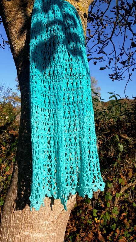KUNENE is a beatiful lace shawl or stole. It is started on the short side and crocheted to desired length. At the beginning and end Kunene is decorated with a lace pattern.