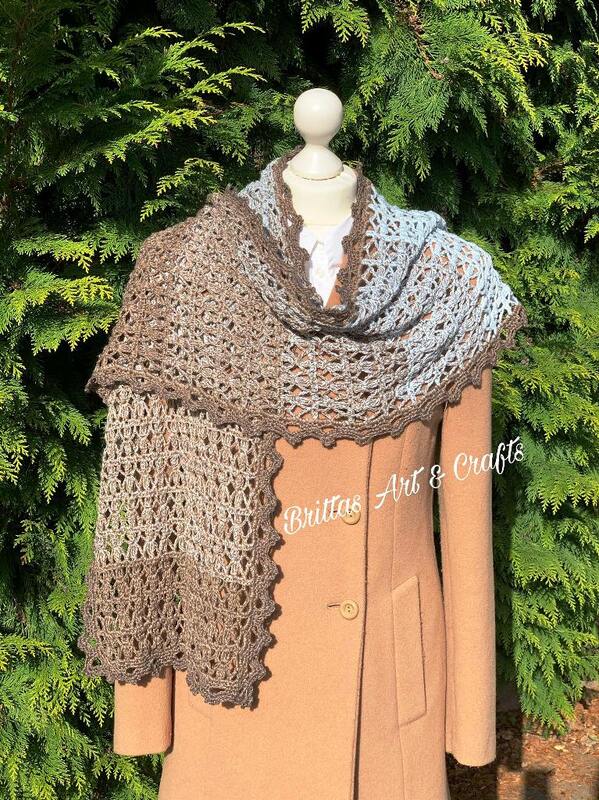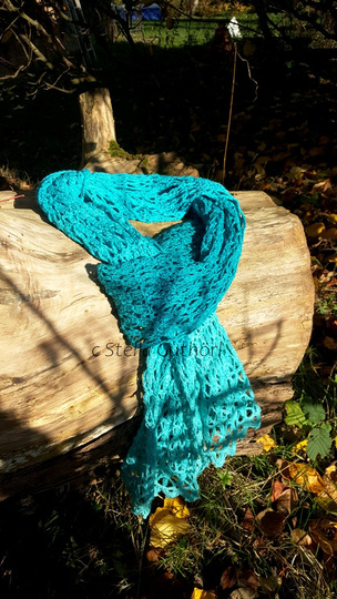 Stole or scarf KUNENE can be crocheted in any desired width (the repeat can be repeated as often as you like) and length and with any needle size and suitable yarn.