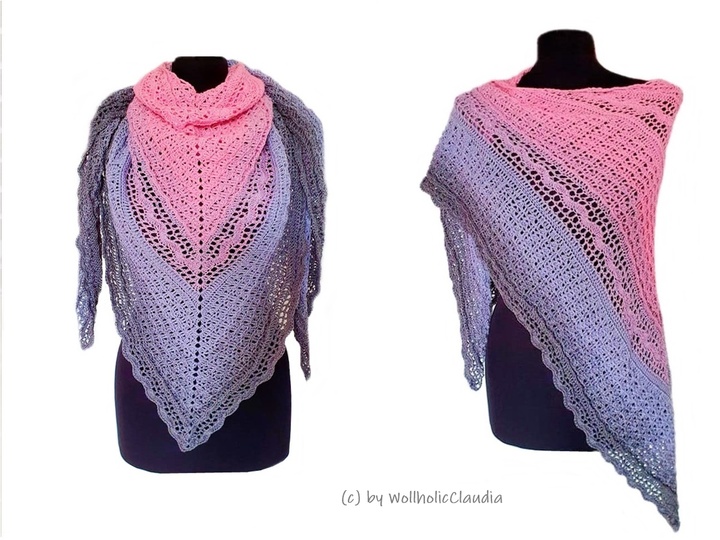 Auch in der Dreiecksversion ist dieses Tuch ein absoluter Hingucker. Es kann mit jedem beliebigen Garn und der dazu passenden Nadelstärke angefertigt werden.