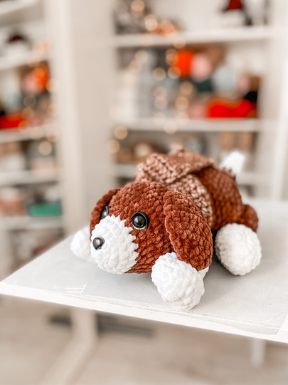 Wenn du die Plüschwolle von Himalaya Dolphin Baby benutzt, wird der Hund ca. 25 cm groß