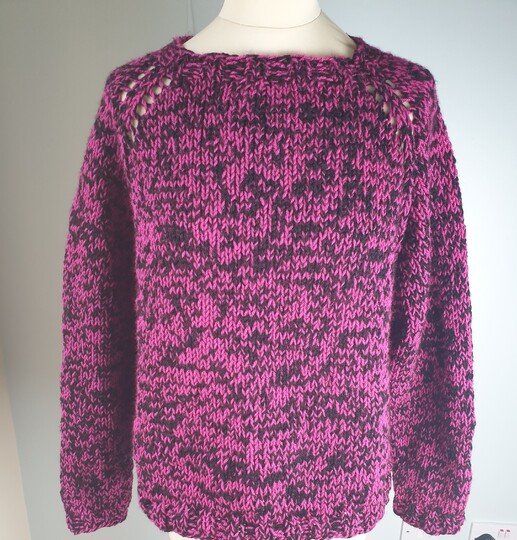 This is a Pattern for a simple but super cosy Pullover. Really fast finished and so much fun working on it. The Pullover is worked with 2 threads hold together in 2 different colours which gives an unique pattern.