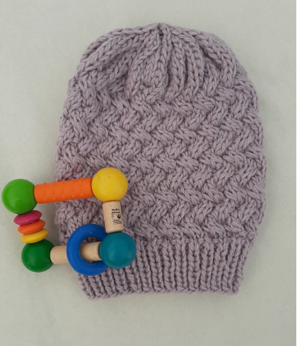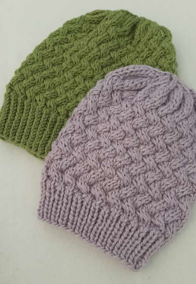 A warm beanie with a great cable pattern. The beanie is knitted in rounds. The pattern is written for three sizes - divergent information for size 2 or 3 is written after / . If you want, you can add a pompom. You knit with yarn held together. If you knit very tight, you should choose larger needles. Have fun knitting 😊