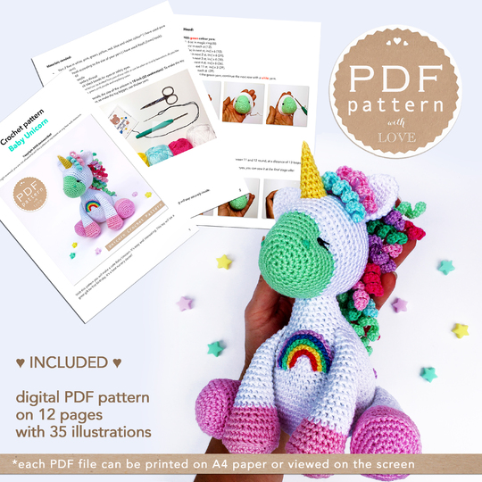 With this pattern you will make a cute Unicorn with rainbow. It's interesting and very easy to follow.