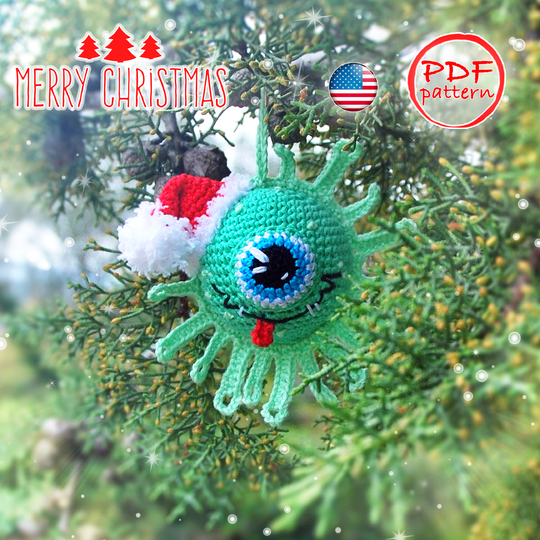 Amigurumi Christmas Microbe Crochet pattern - Christmas holiday home decor and Christmas tree decoration.