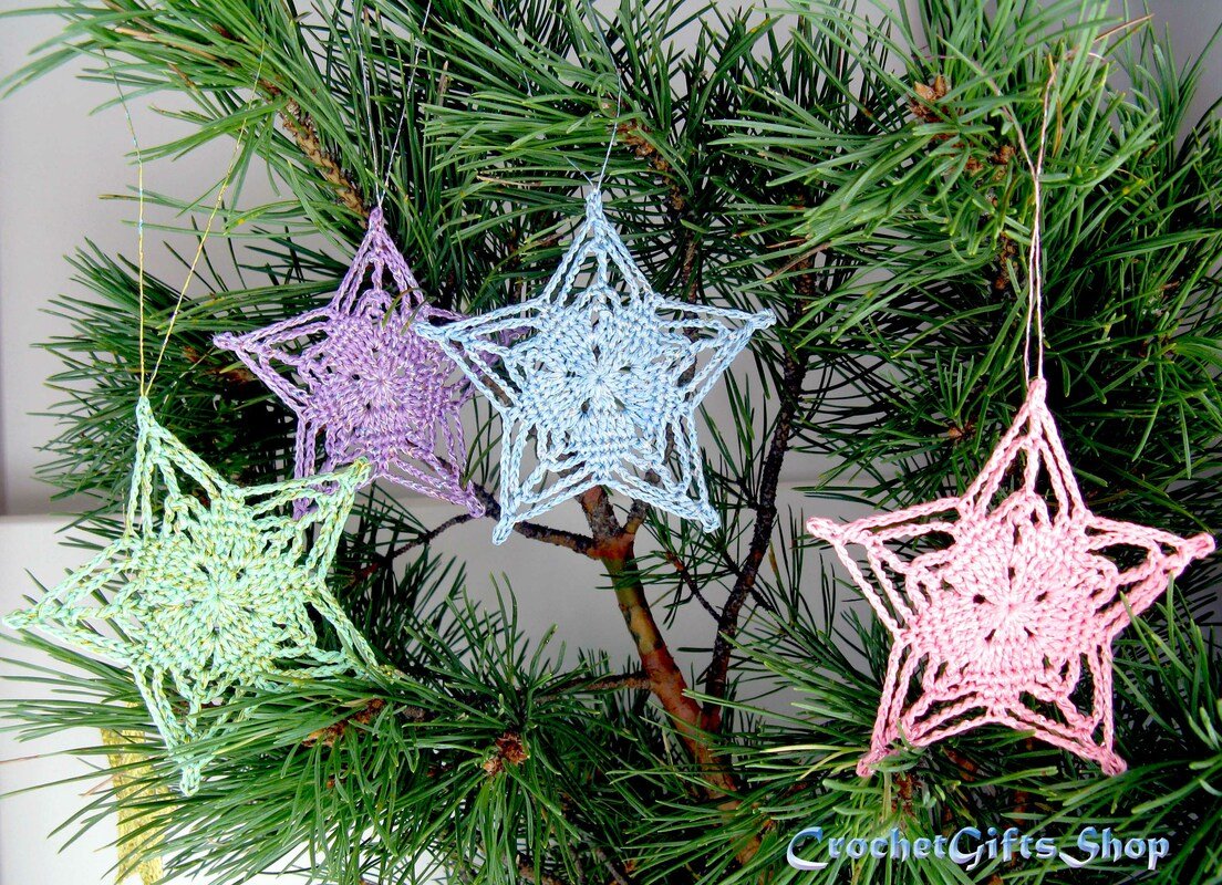 This pretty, bright star will make a beautiful accent to your Christmas tree or any holiday decor! You will want to crochet star for your tree, as gift wrap decorations, office decorations.