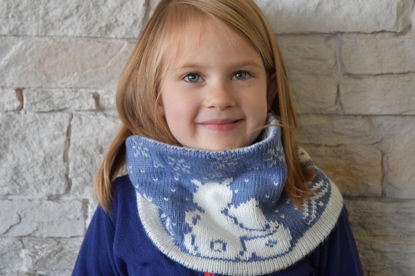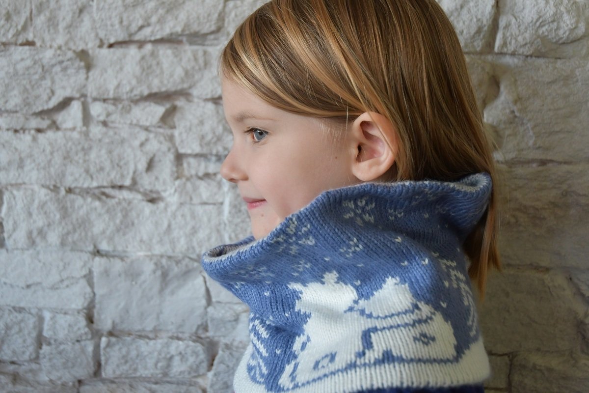This cowl is knitted in the Double Knitting Technique. Thus, it is extra soft and warm for your child, and it can be worn on both sides.