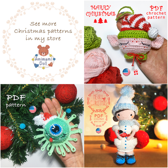 When using these materials, the size of Elf 2.4x4.7x6.3 inch (6x12x16 cm). To make the toy smaller, use thinner yarn, to make the toy bigger, use thicker yarn.