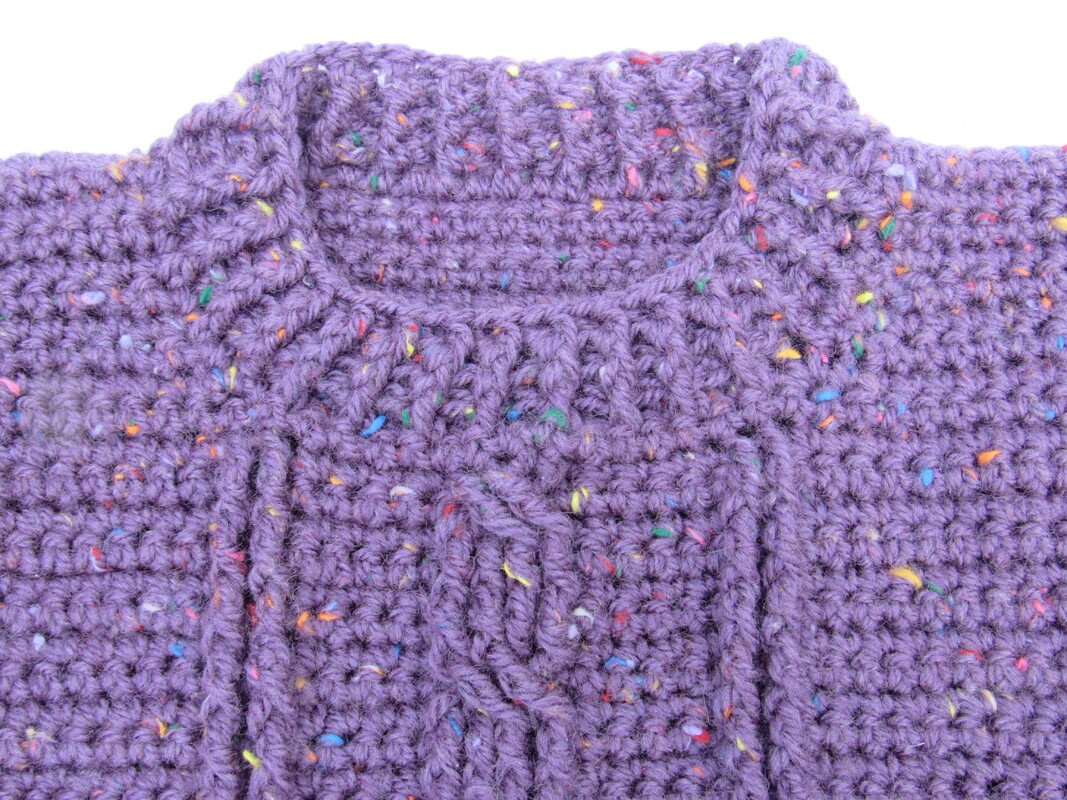 Darcy is an easy cabled sweater pattern. Crocheted in Aran and using dc(sc) for the main part. The cable panel is worked over 16 stitches, front post tr(dc) and dtr(tr) are worked to form the textured stitches.