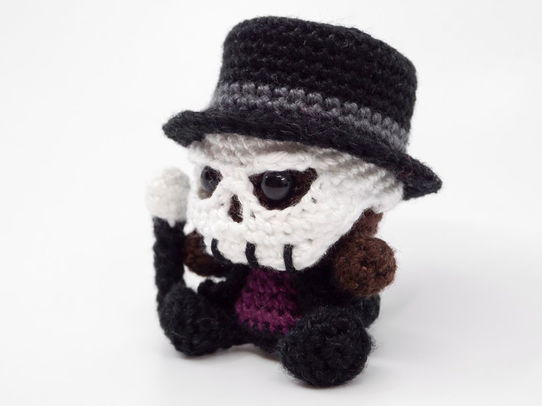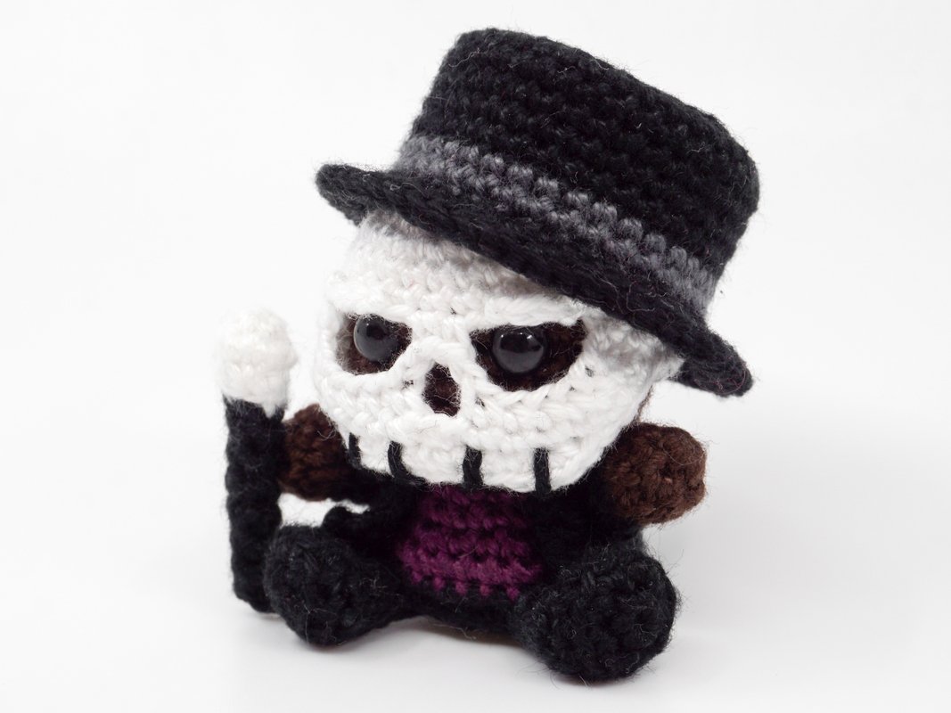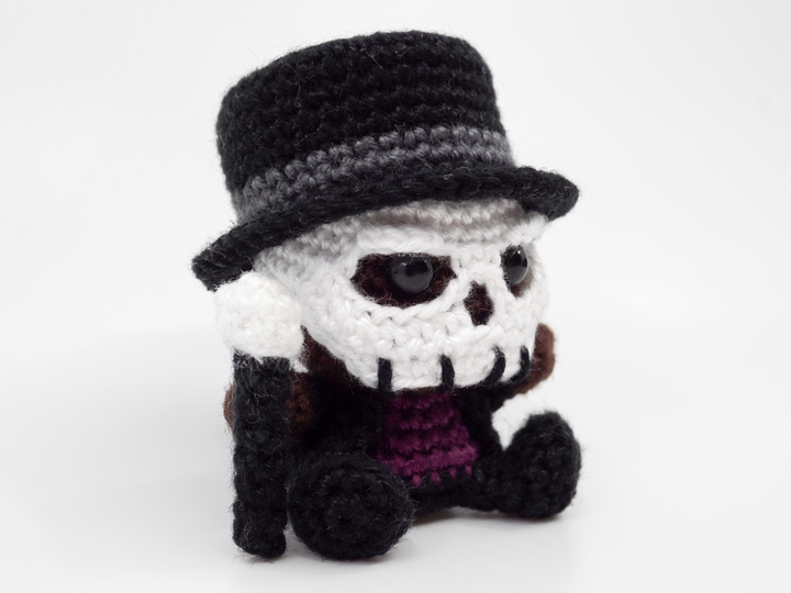 This little Baron Samedi can be crocheted relatively quickly and is perfect as a decorative figurine, gift or key chain.