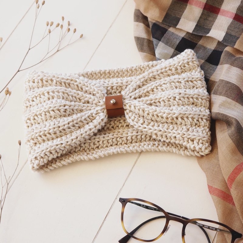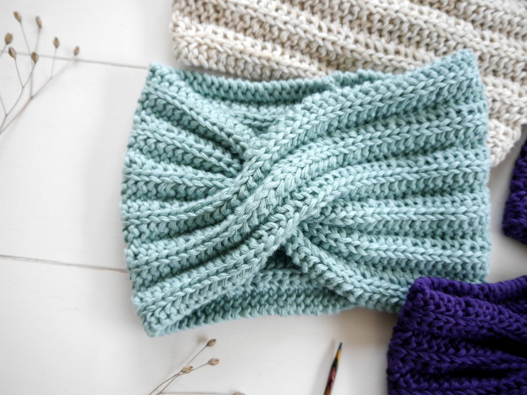 The headband NIA is a must-have this winter season! The twist on the front side gives a very fancy look. As an option, the easier version without the twist is described in detail, too. It is shown on one of our product images with the lovely artificial leather strap in front instead of the twist.