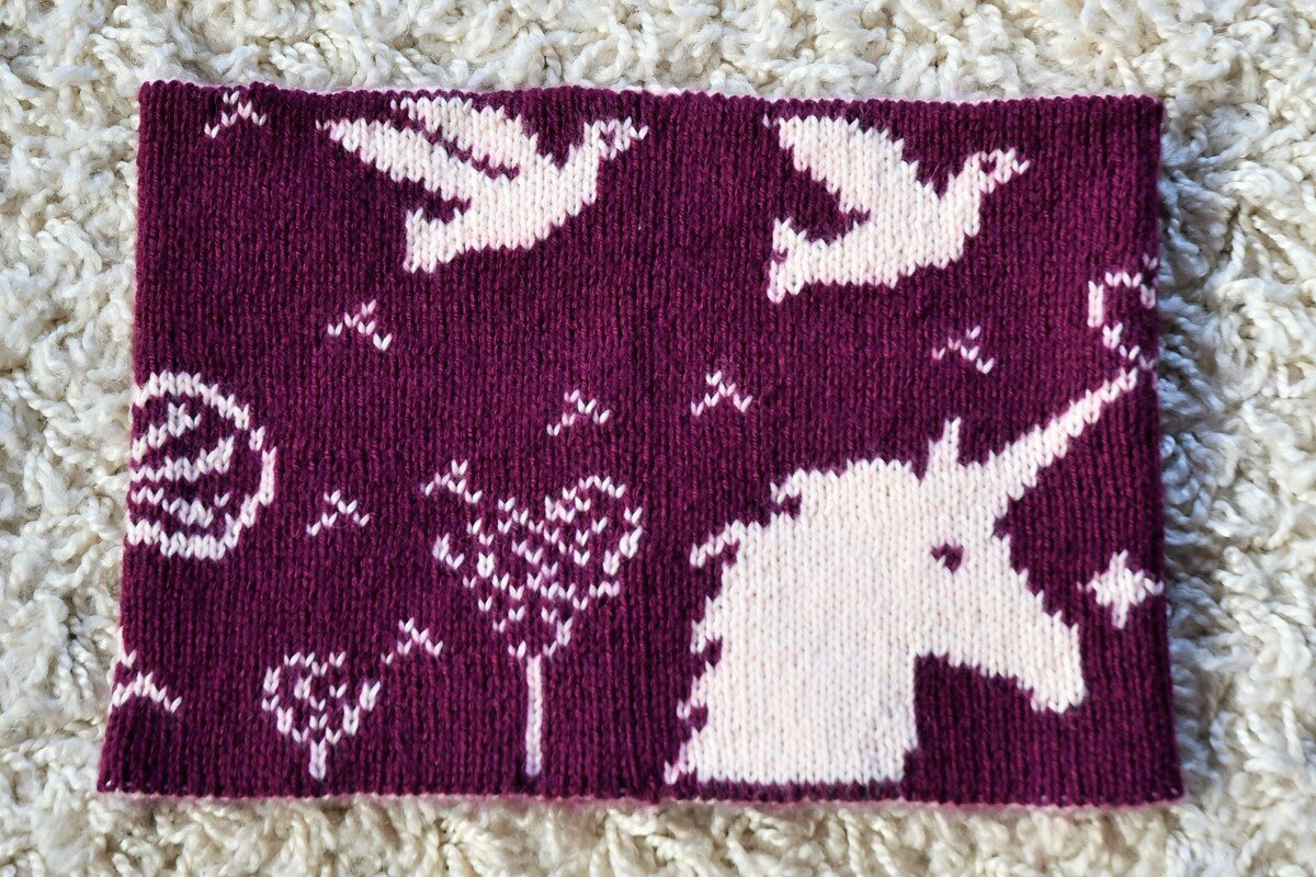 This snuggly cowl is a dream come true for all romantic and dreamy girls! It tells the story about Unicorns of Love, the diligent fairy Elvira and how the love comes into our hearts.