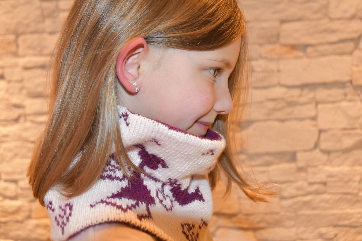 As this cowl is knitted in the Double Knitting Technique, it is extra soft and warm for your child, and it can be worn on both sides.