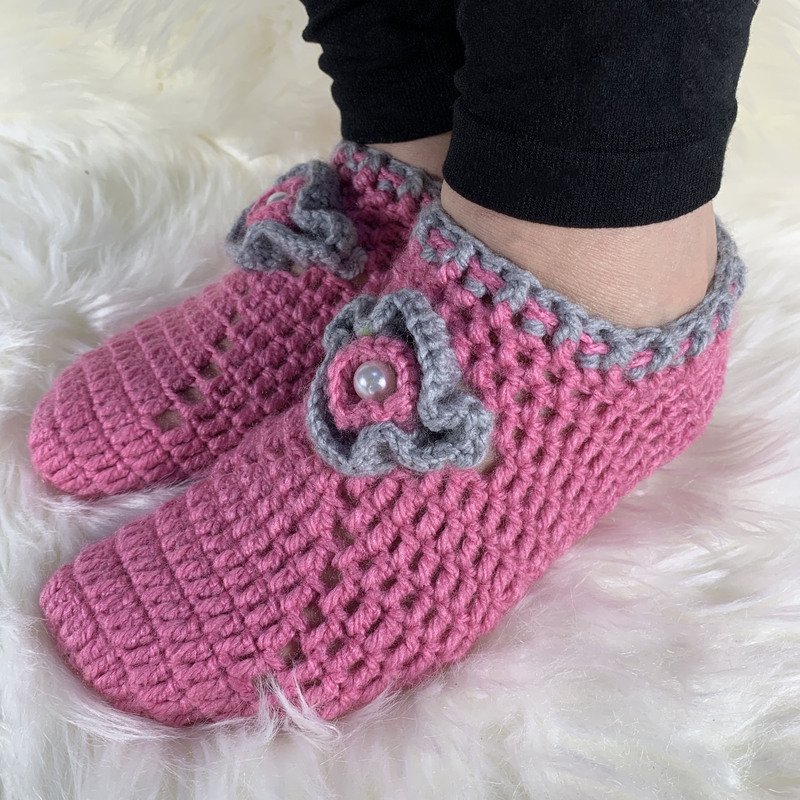 Yarn: 100% acrylic yarn | Weight : Aran| 2 shades ( Slippers will take about 80g of yarn)