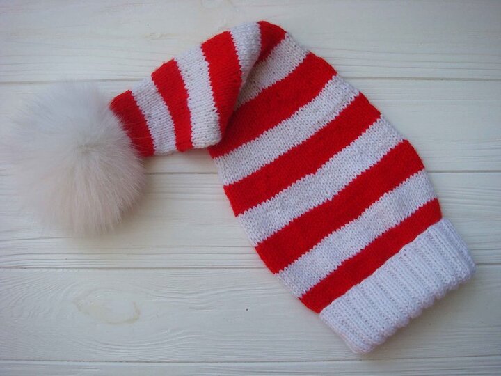Knit Pattern for DIY Santa Claus Hat. Santa Hat is an awesome hand-knit hat for Christmas, New Year and other winter celebration occasions.