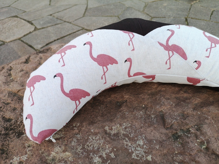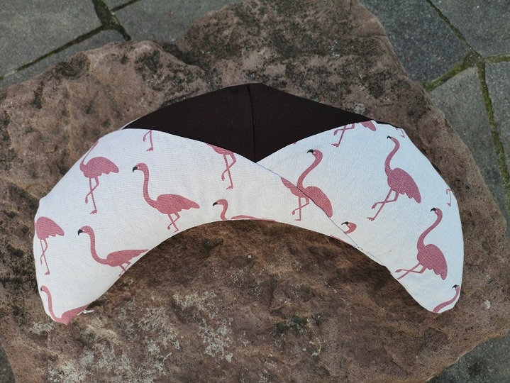 Es ist 45 cm breit, die Sitzfläche in der Mitte ist 16 cm tief und 11 cm hoch, wenn es prall mit Dinkelspelz gefüllt ist.