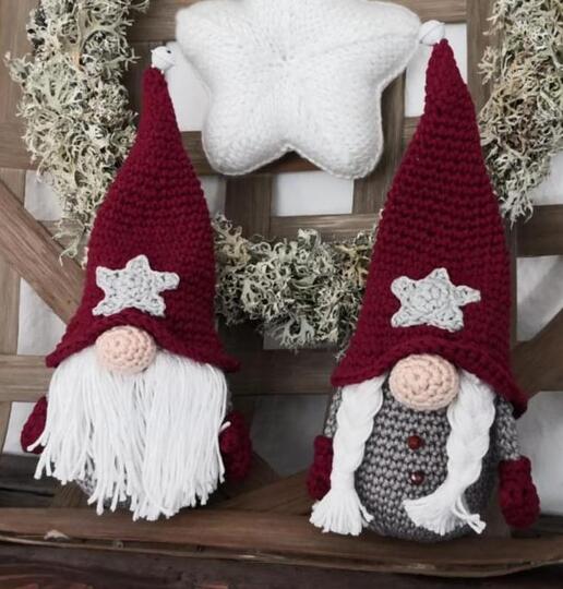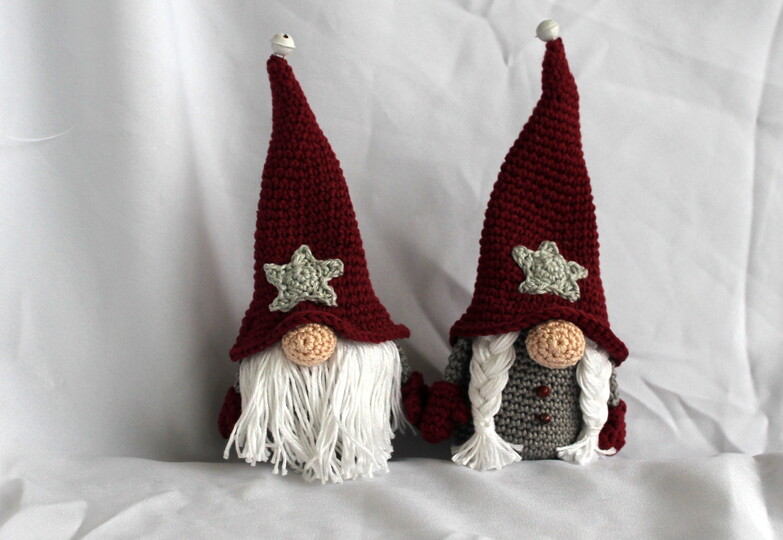 The crochet gnomes will become about 20 cm/ 8 inches tall.