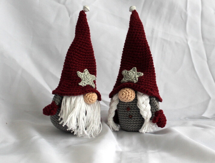 Finished crocheted, the gnomes will be about 20 cm/ 8 inches tall