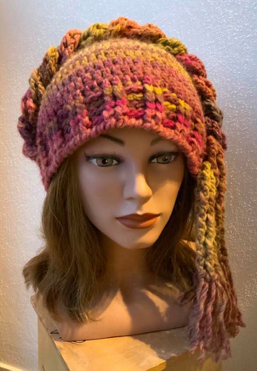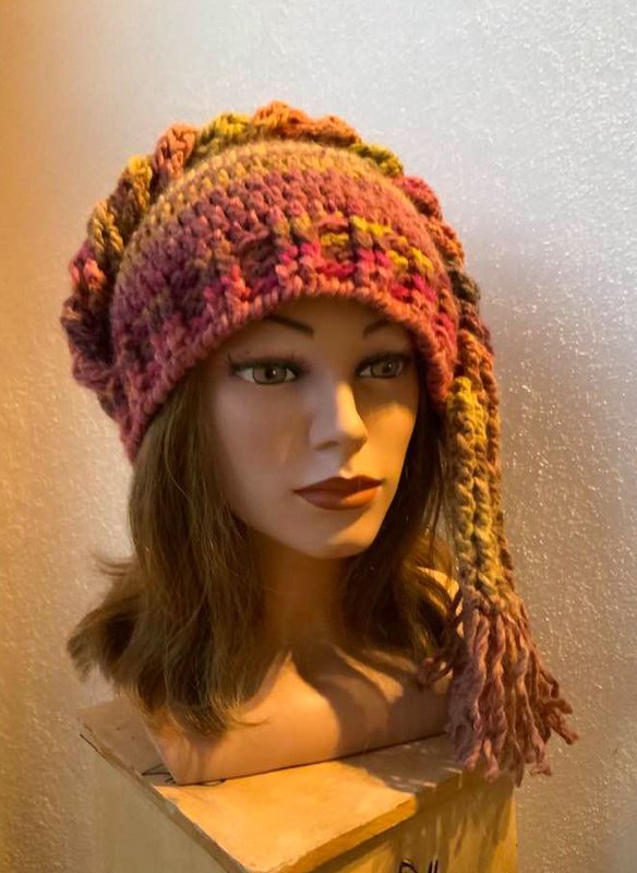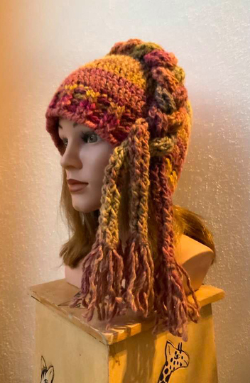 Die Mütze "GRETA" kannst Du natürlich auch wie einen Irokesen tragen und dabei die Fransen nach hinten wie ein Pferdeschwanz...
