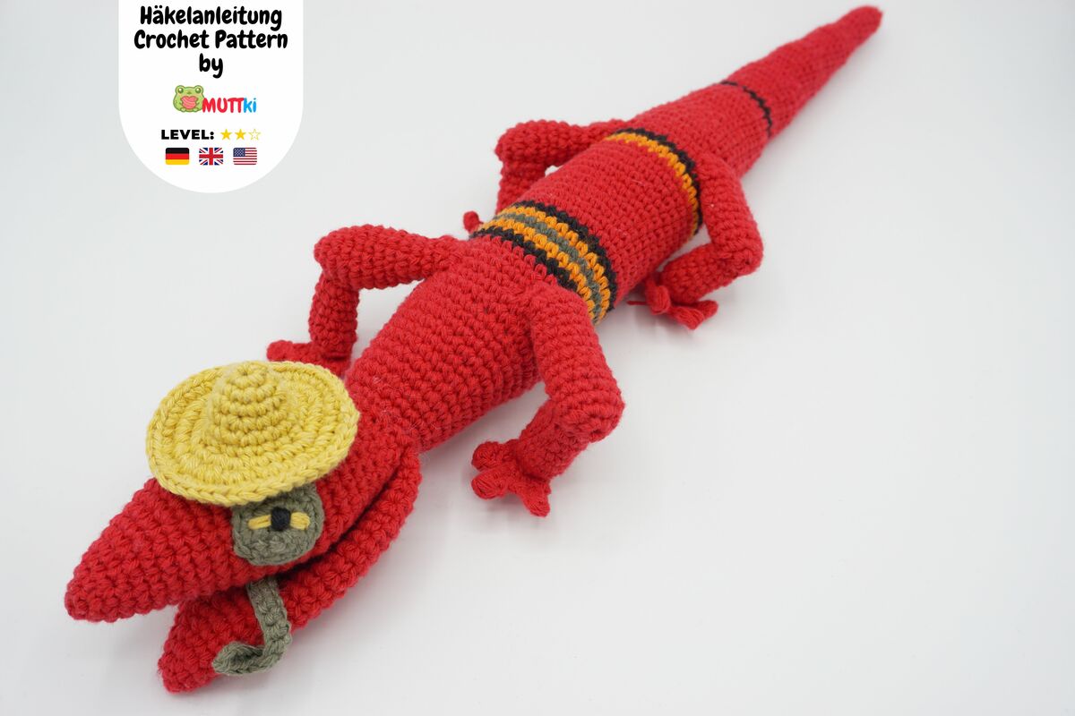 A Dabobbi-Lizard crochet pattern on 6 colourful pages in PDF format (German, US and UK version).