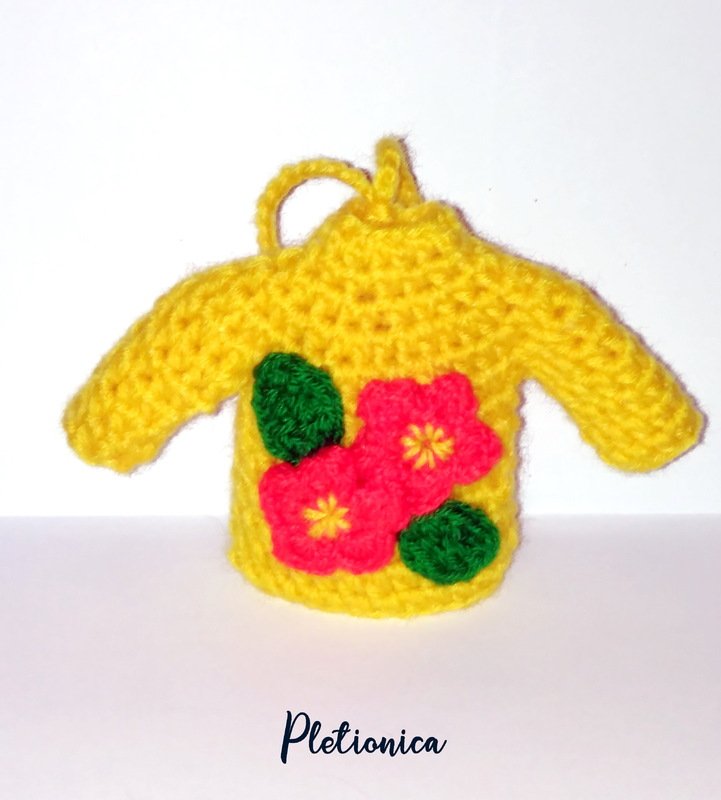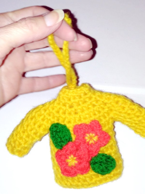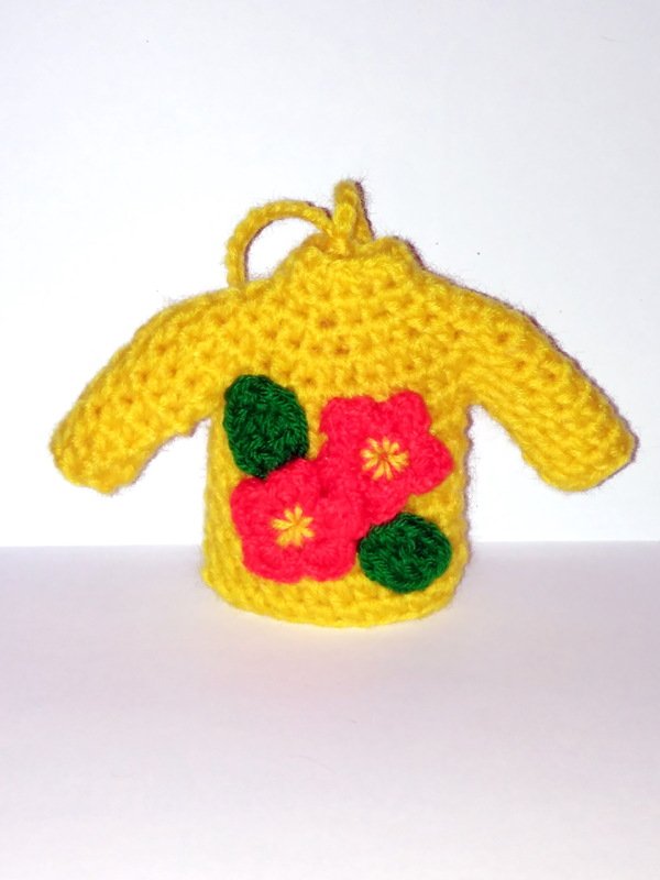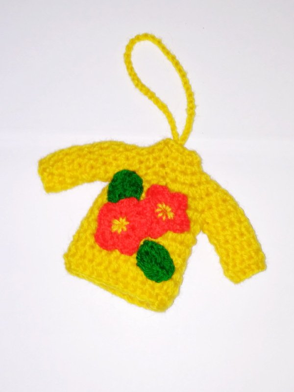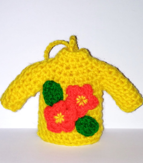 Yellow Christmas sweater ornament is a perfect Christmas gift for your kids and friends. You can decorate your Christmas tree with this tiny sweater, made by yourself! Ornament is made of cotton (or acrylic) yarn, dimensions are 12 cm (4,7 inches). Pattern is written in English, U.S. terminology.