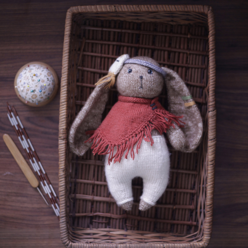 NOTE: This is a pattern to make the knitted bunny and her clothes. You are not buying an actual finished product.