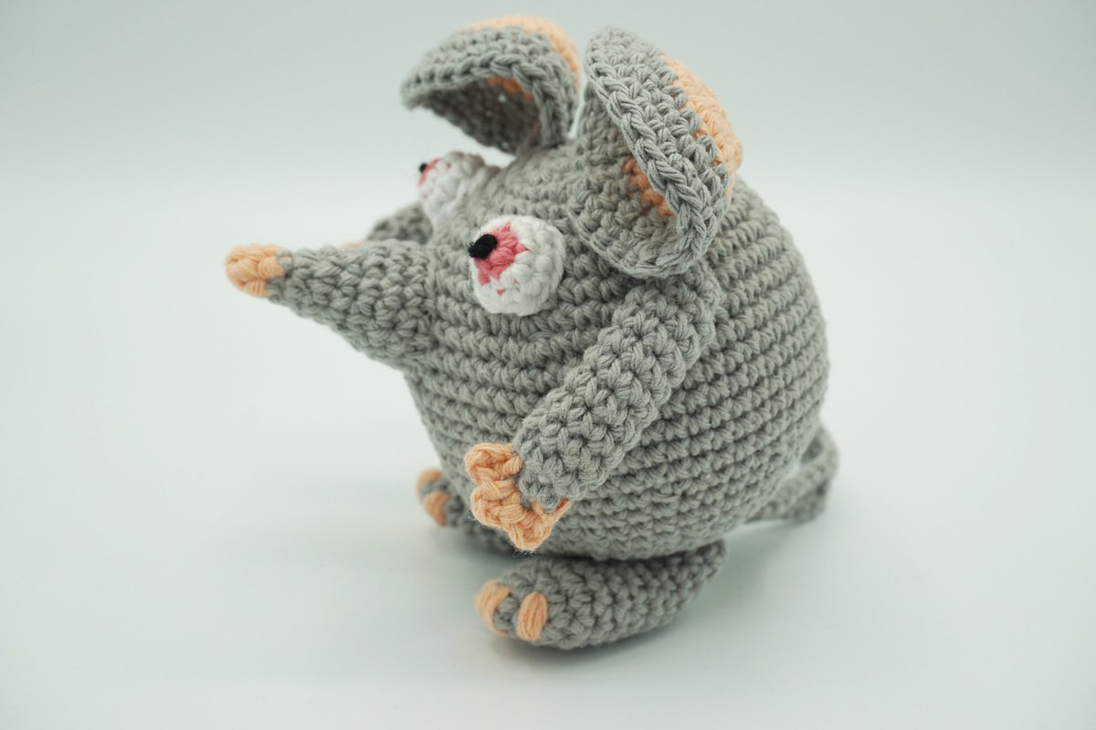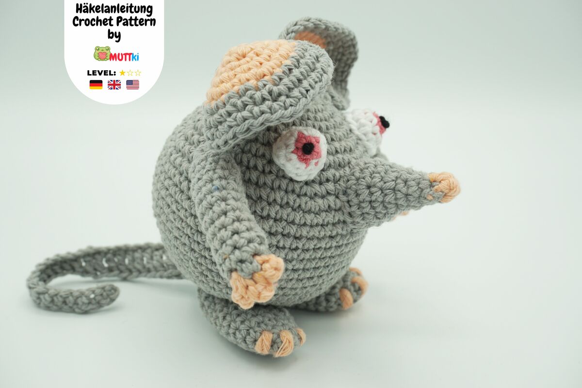 A Muki-Mouse ⇝ crochet pattern on 5 colourful pages in PDF format (German, US and UK version).