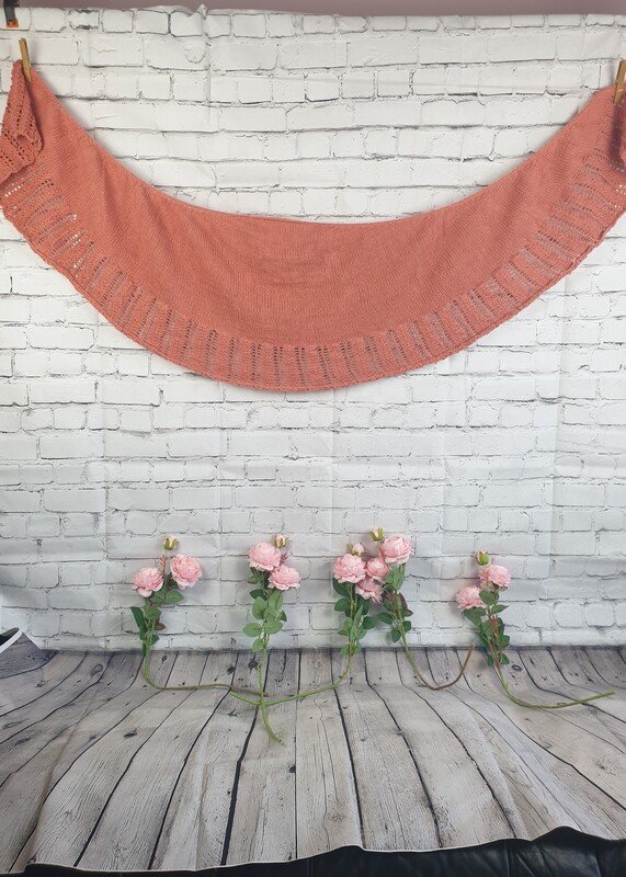 This is a Pattern for a Beautiful scarf worked in rows with increases in every row which has a bit of a crescent shape. I used DK cotton Yarn but can be worked with any similar yarn. The scarf is worked in stockinette stitch where the first st is always slipped purl wise and the first and last 2 stitches are always knitted. The Lace part is still in stockinette where the back rows are purled throughout and makes it an easy scarf which can be worked while enjoying some tv as you get the hang of it quite fast. The Scarf can be worn as stole or as a normal winter scarf.