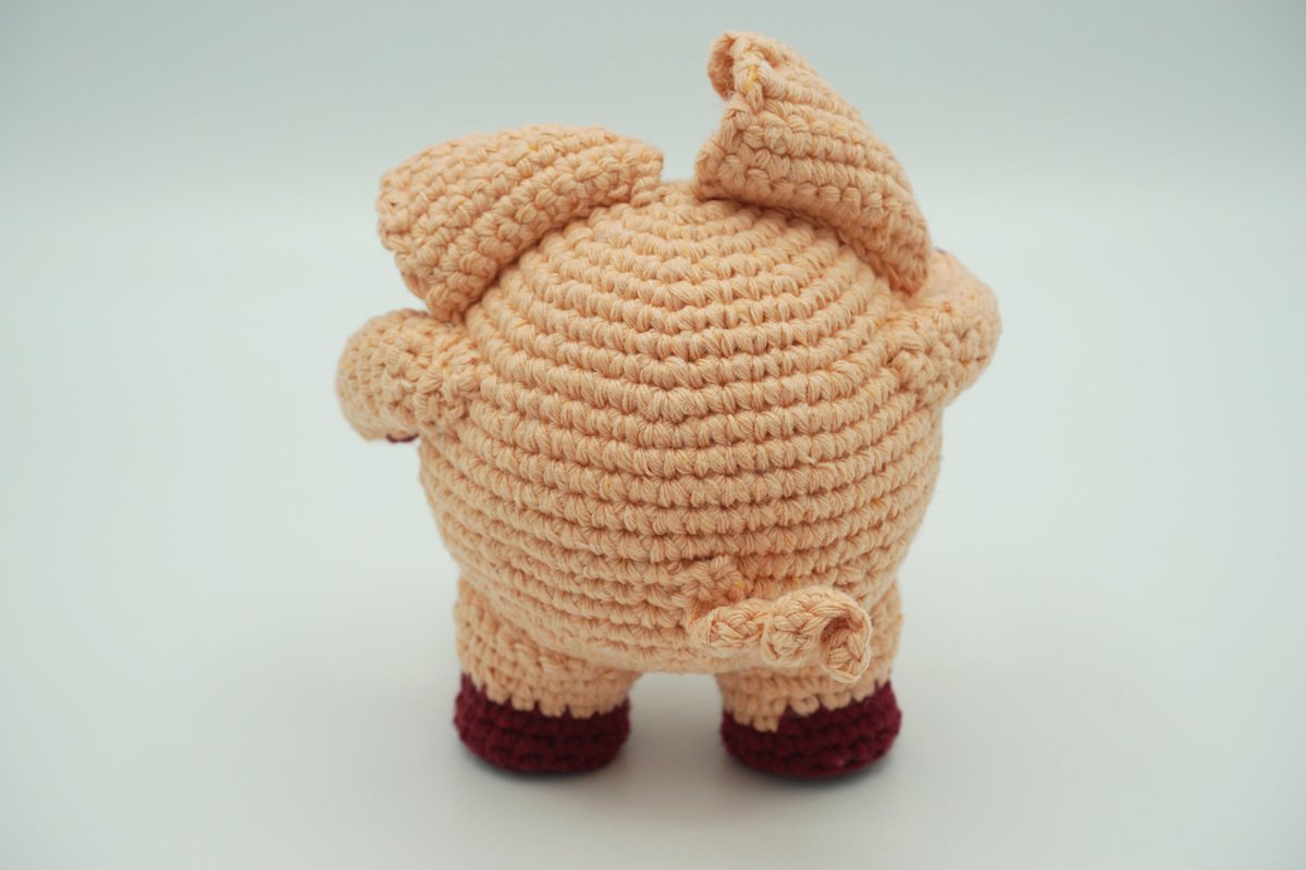 A Muki-Piggy ⇝ crochet pattern on 4 colourful pages in PDF format (German, US and UK version).