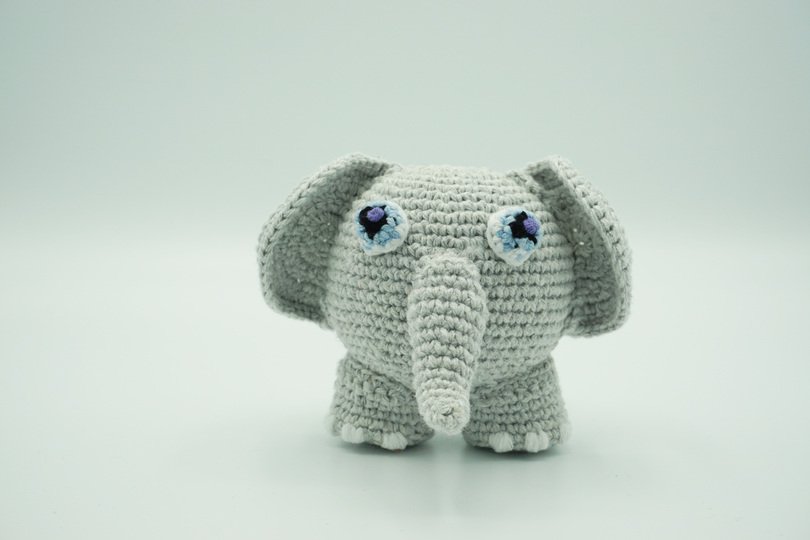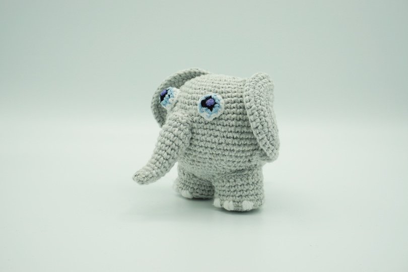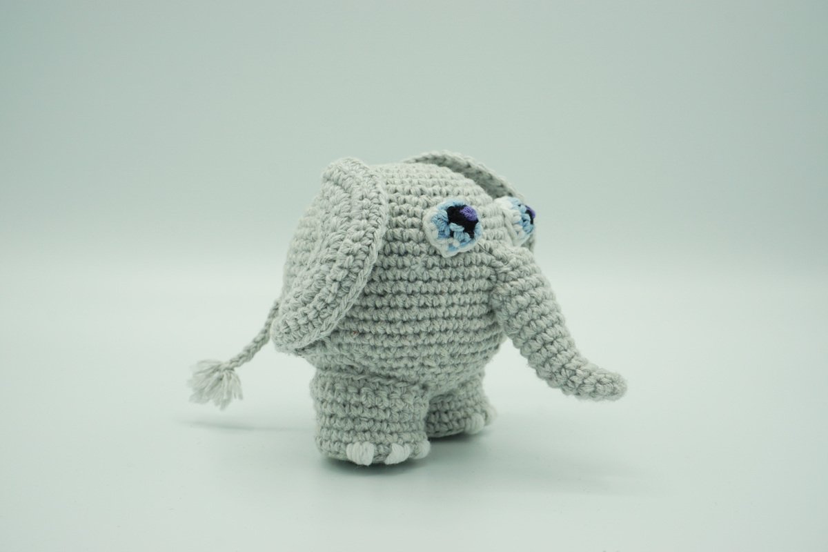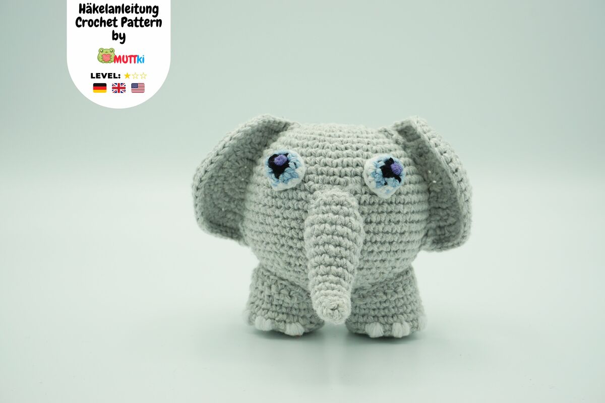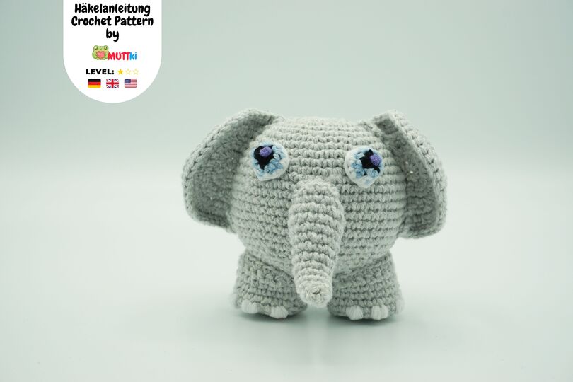 A Muki-Elephant ⇝ crochet pattern on 4 colourful pages in PDF format (German, US and UK version).
