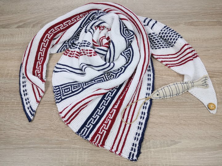 Es war ein traumhaft schöner Urlaub an der Ostsee der mich zu diesem asymmetrischen Tuch inspirierte.