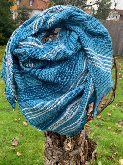 Du kannst das Tuch kleiner oder größer stricken indem du Mustersätze weg lässt oder wiederholst.