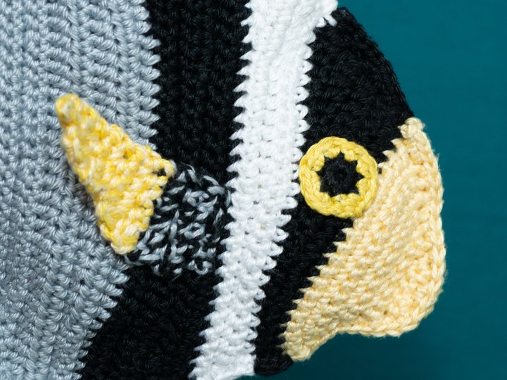 Fortunately, thanks to cotton yarn our Fluso the batfish is not quite so cheeky and we can tame him the way we want him.