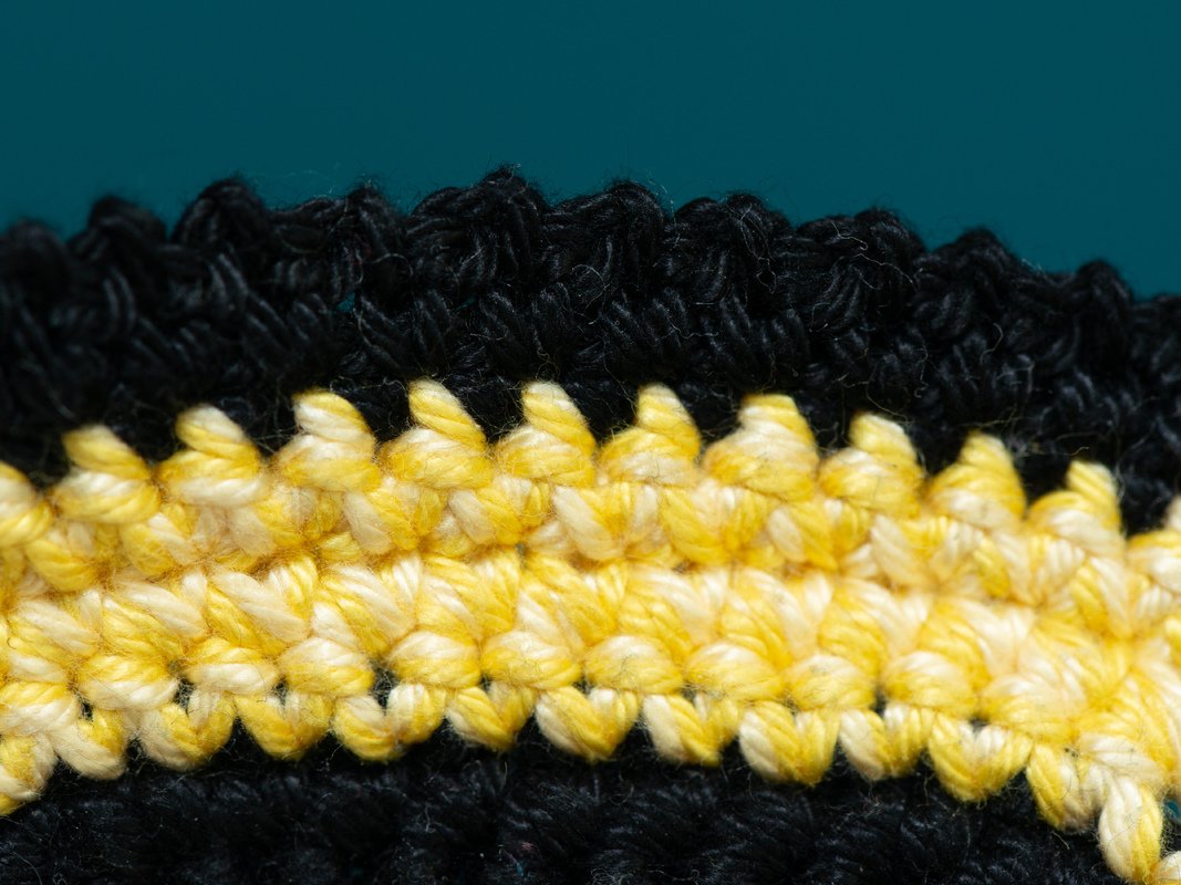 cotton yarn: dark yellow, light yellow, silver or gray, white, black