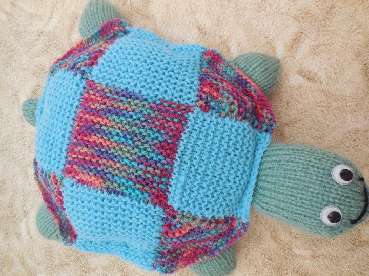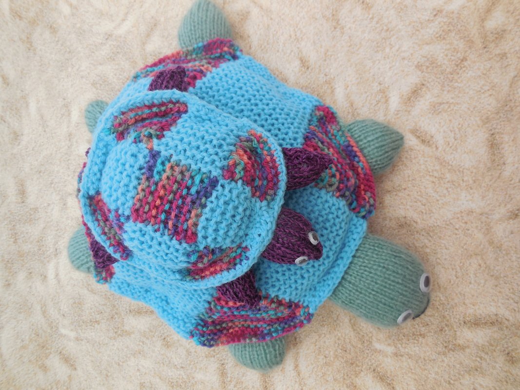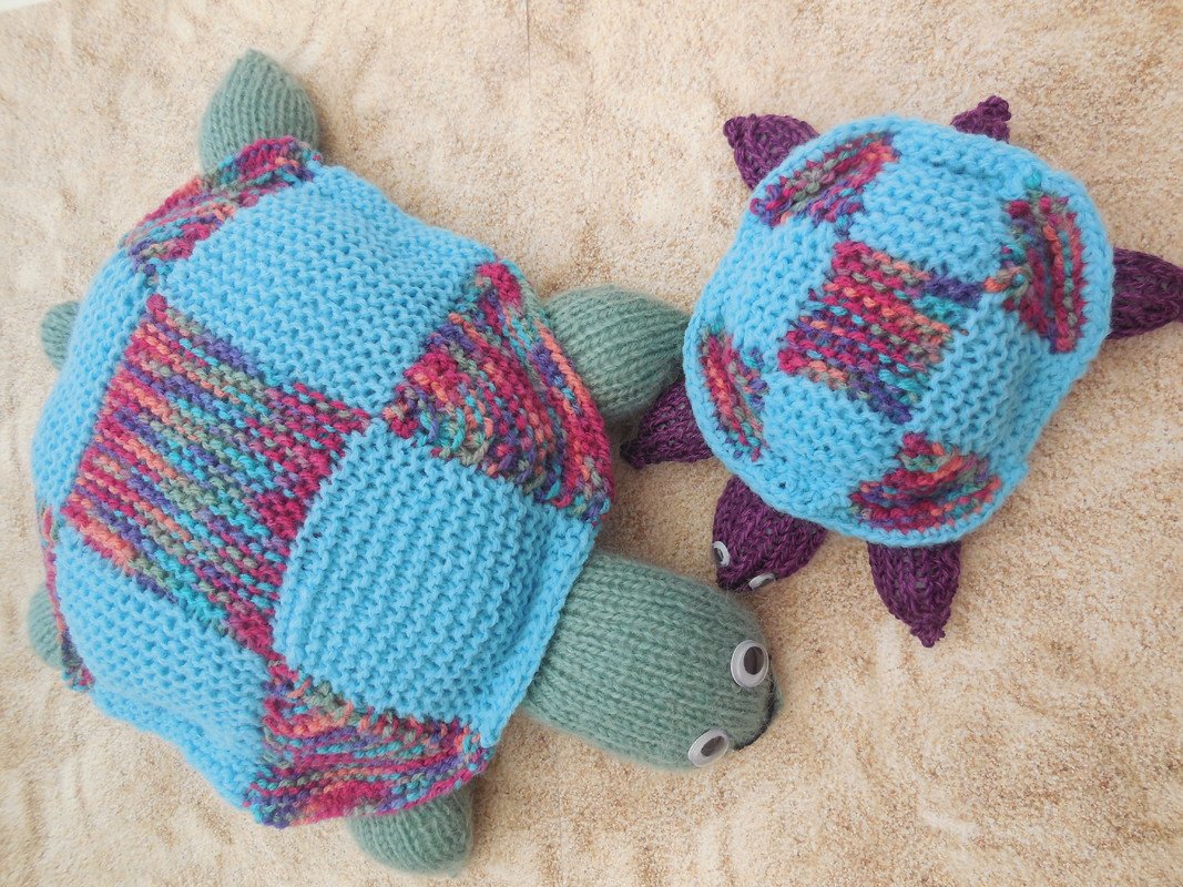 Hier ist eine ganz einfache Strickanleitung für eine Schildkröte in 2 Größen. Ihr könnt dabei Eure ganzen Wollreste verwerten und eine ganze Schildkrötenfamilie stricken wenn ihr Lust habt. Die Durchmesser der Panzer von den fertigen Tierchen sind ca. 20 und 10 cm.
