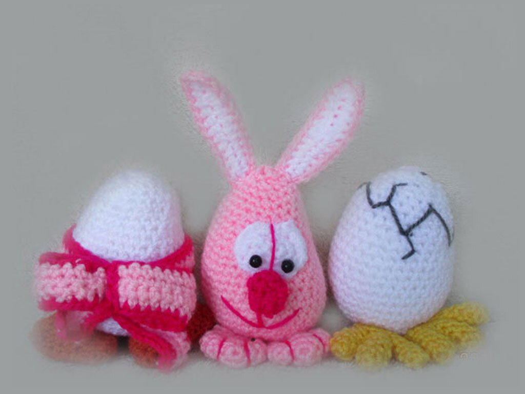 4 mm-crochet hook and Stylecraft special, yarn: for the rabbit clothes and the eggs : 1 x white, little bit grey, little bit yellow, little bit ornange and different colors of your choice