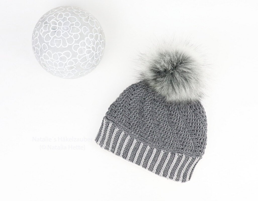 A warm beanie with a relief pattern "Henri" for the whole family (in knitted look)! This beanie is easy to crochet. It is finished after about 4-5 hours (depending on the size) and with a large bobble (faux fur) a real eye-catcher! The beanie is crocheted from the bottom up. This beanie can be crocheted for both children and adults.