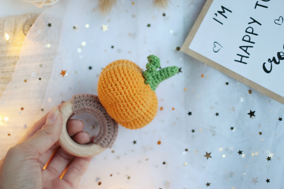 A fun and easy to follow pattern that will help you crochet rattle pumpkin