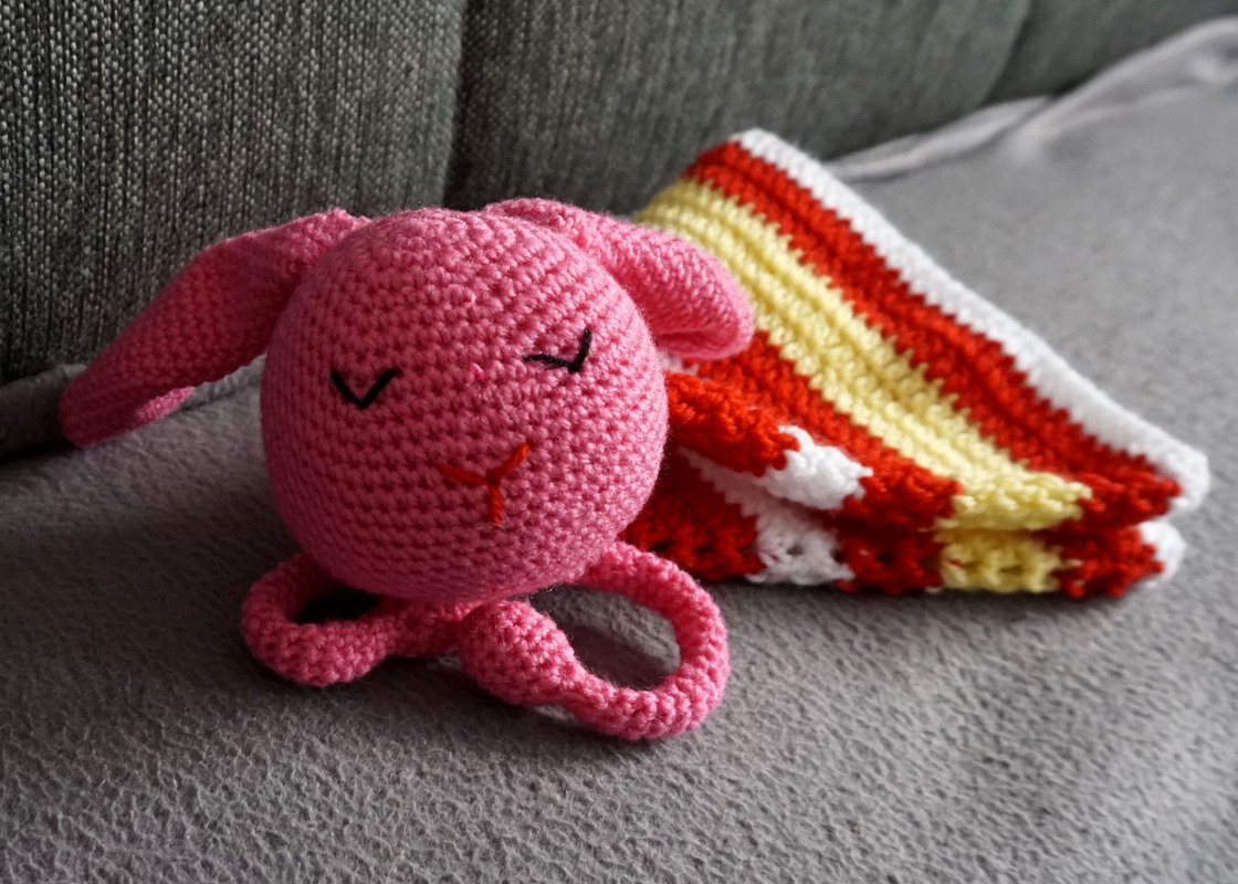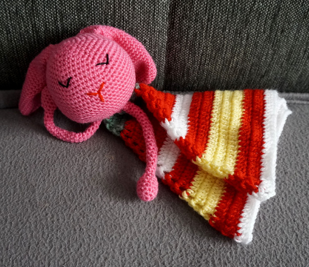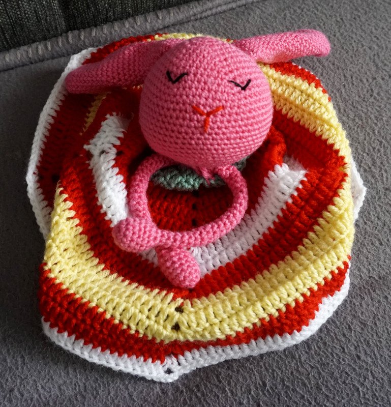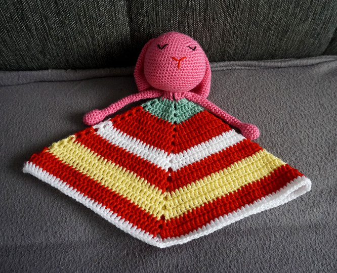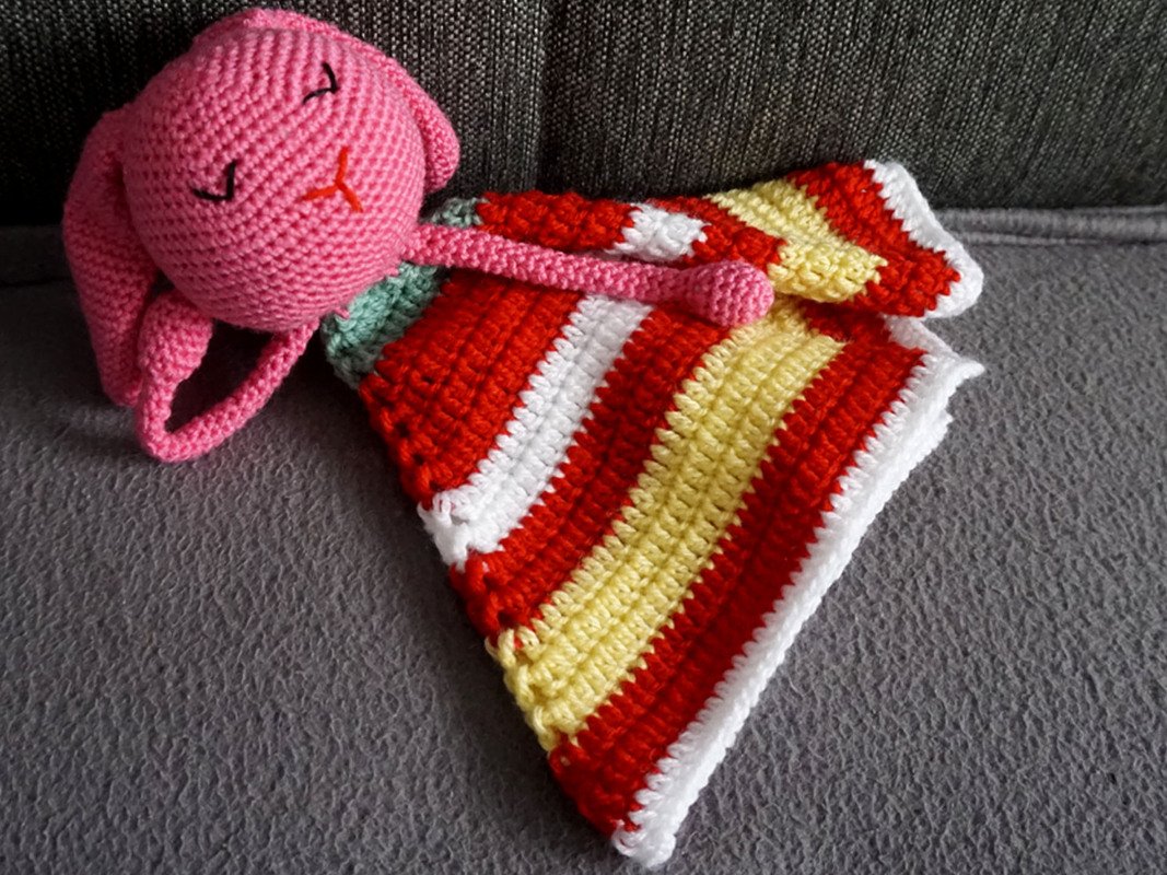 Here we offer you crochet Pattern for the Cuddle Cloth Colorfull Striped Bunny!